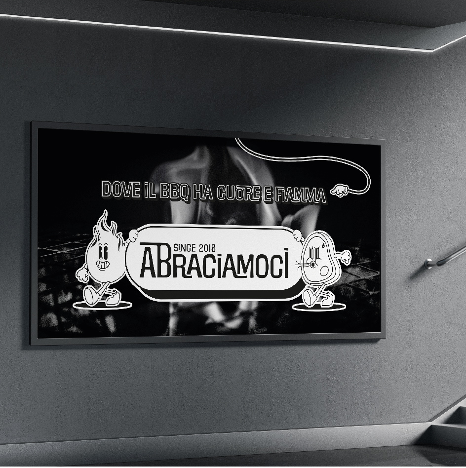 Il logo? Una fiamma e un pezzo di carne (in stile mascotte) che passeggiano, come due vecchi amici davanti alla griglia...La carne però non sembra affatto felice!